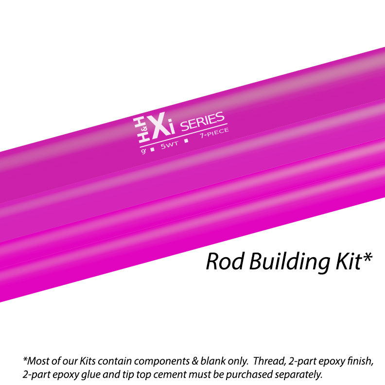 The kit includes the H&H 2024 “pXi” Pink 9′ 5-weight, 4-piece Fly Rod Blank in Glossy Hot Pink, Seaguide tip top and running guides in Adaman Gun-smoke finish, Seaguide Gun-smoke (SS316L – newer, high grade 316 stainless steel) 10mm & 12mm LBG Stripping Guide with Silicon Nitride Ceramic Ring insert, much thinner profile but very, very strong! And they’re lighter than others’ solid titanium guides with Zirconia rings (Learn more here.)! This kit also includes cork grip, AAAA Quality, reverse half wells 7″, H&H VFS reel seat with Dark Gun-smoke aluminum skeleton with solid Rosewood burl insert (might find some birdeyes in the Rosewood), Gun-smoke Adaman running guides and tip top, matching hook keeper and winding check. Threads and glues/finishes not included. You find the threads here and the 2-part epoxy glues and thread finish here.
